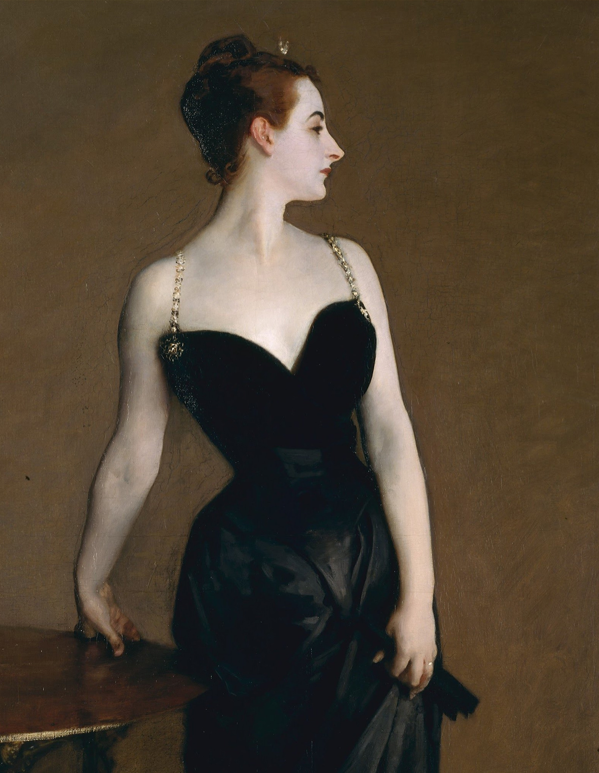 Nein, das ist kein Foto, sondern ein Gemälde John Singer Sargents, der Virginie Amélie Avegno Gautreau in einer für die damalige Zeit provokativen Pose (in einer ersten Variante war ihr der rechte Träger des Kleids auch noch über die Schulter gerutscht) porträtiert hatte. Im Paris des Jahres 1884 ließ es Gerüchte über das außereheliche Liebesleben der Abgebildeten sprießen, die trotz des anonymisierten Bildtitels von jedermann erkannt worden war. Der Maler musste schließlich vor den Gerüchten und einer gehässigen Kunstkritik nach London fliehen und Virginie Gautreau hatte Mühe, ihren Ruf zu wahren.
