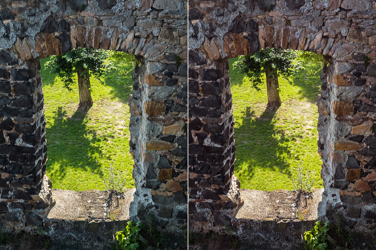 Mit dem Weißabgleich lässt sich dieser Blaustich nicht sinnvoll korrigieren, da dann alle von der Sonne beschienenen Motive einen Orangestich bekämen. Im Raw-Konverter ist es aber meist möglich, die Farbwiedergabe für die Lichter, Mitteltöne und Schatten getrennt zu steuern, und mit den Reglern für die Schatten kann man deren Farben etwas in Richtung Orange verschieben – aber nicht zu weit, denn ein leichter Blaustich wirkt natürlicher als völlig neutrale Schatten.